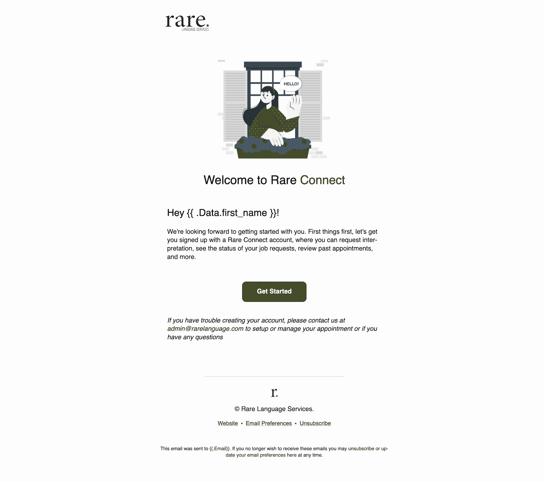 As soon as the account is created they will recieve the following email allowing them to access Rare Connect,